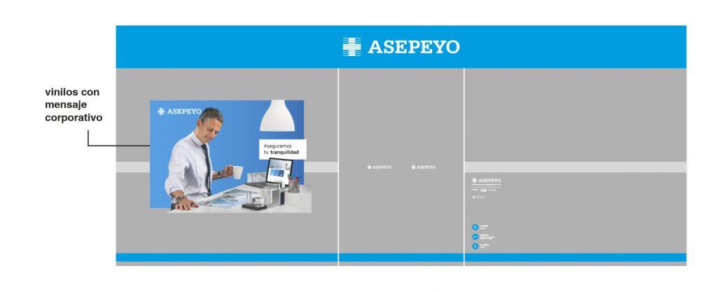 Esta tipología de vinilos nos cede un nuevo espacio de comunicación para utilizar como canal corporativo. Es un comunicador silencioso de nuestros valores de marca, que ayuda a crear engagement entre la marca y los usuarios, y con la sociedad en general. Las tipologías de mensaje pueden personalizarse y segmentarse de acuerdo a las necesidades de cada área territorial y local.